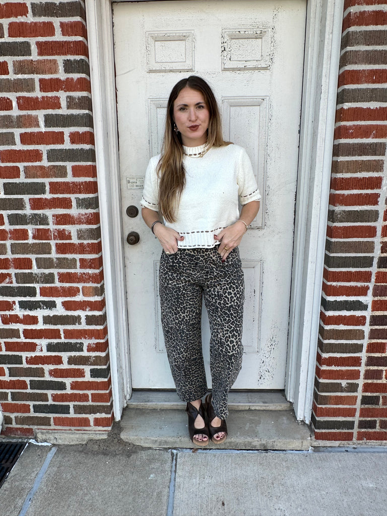 Look fierce and fashionable with our Leopard Love Barrel Jeans. Made with a trendy leopard print and unique barrel leg design, these pants will elevate any outfit. Stay on top of the latest trends while feeling confident and stylish. Say goodbye to boring jeans and hello to a bold and chic look.