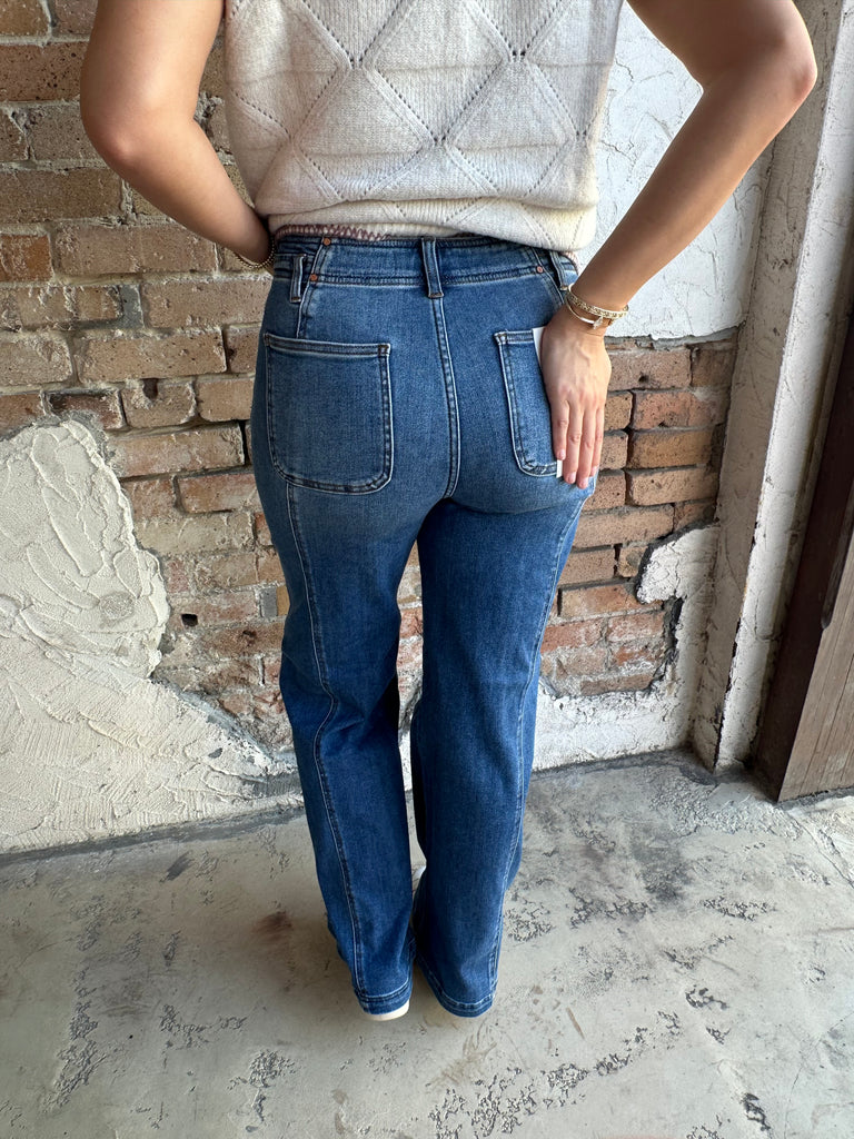 Say hello to The Hattie High Rise — the denim every western girl needs in her closet. Designed with a flattering front yoke detail, a wide-leg fit, and an extra-long inseam for that leg-lengthening look, these jeans are made to move with you. The soft, vintage-inspired wash gives them that perfect worn-in feel while keeping things clean and classic. Style them with boots, heels, or a tucked-in knit for that effortlessly polished, down-home look.