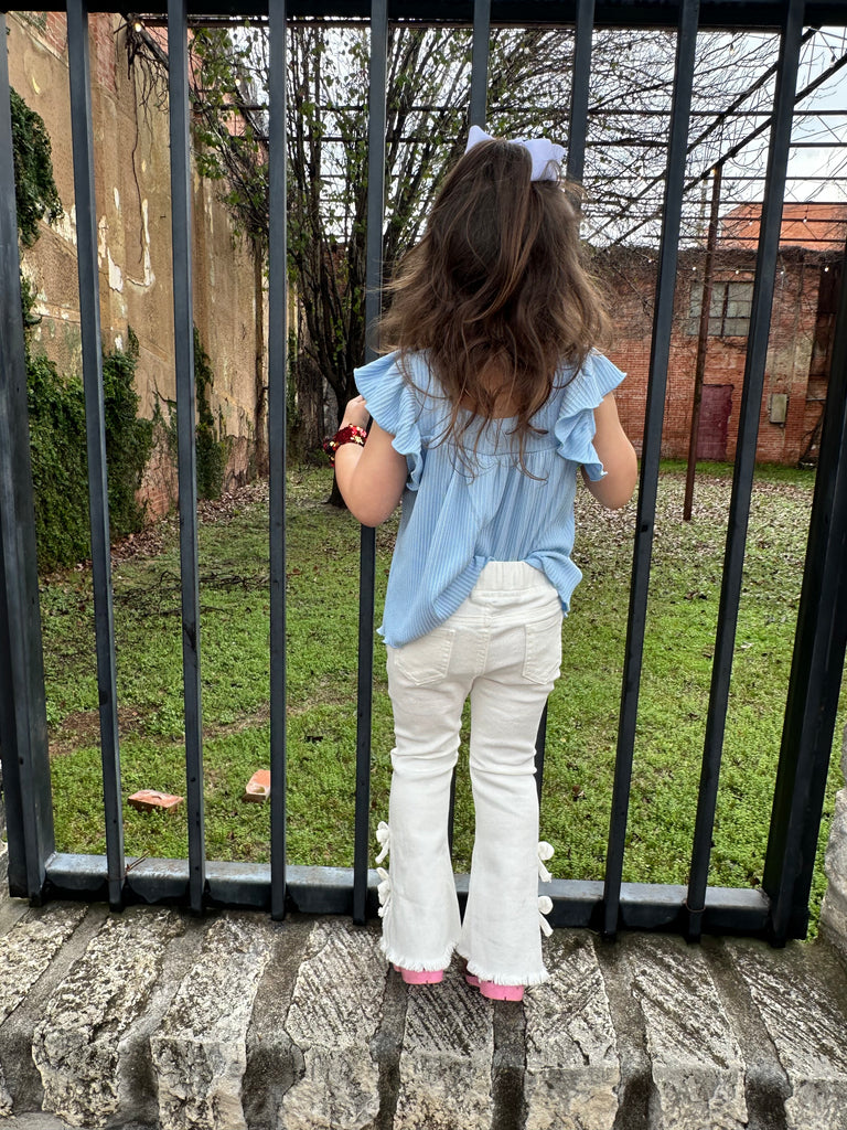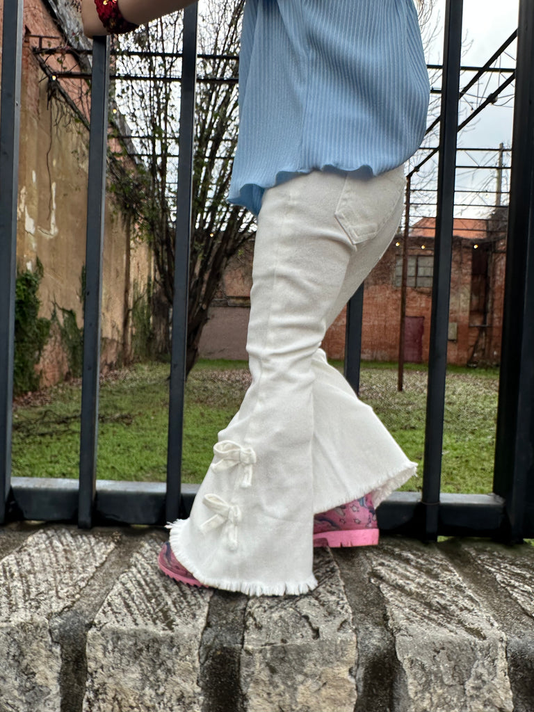Step into festive elegance with these Charming White Bell Bottom Pants. Featuring a flattering bell-bottom silhouette and adorned with adorable bows, they bring a playful yet stylish touch to your wardrobe. Crafted for comfort and designed to impress, these pants are perfect for celebrating the season in chic, cozy style.