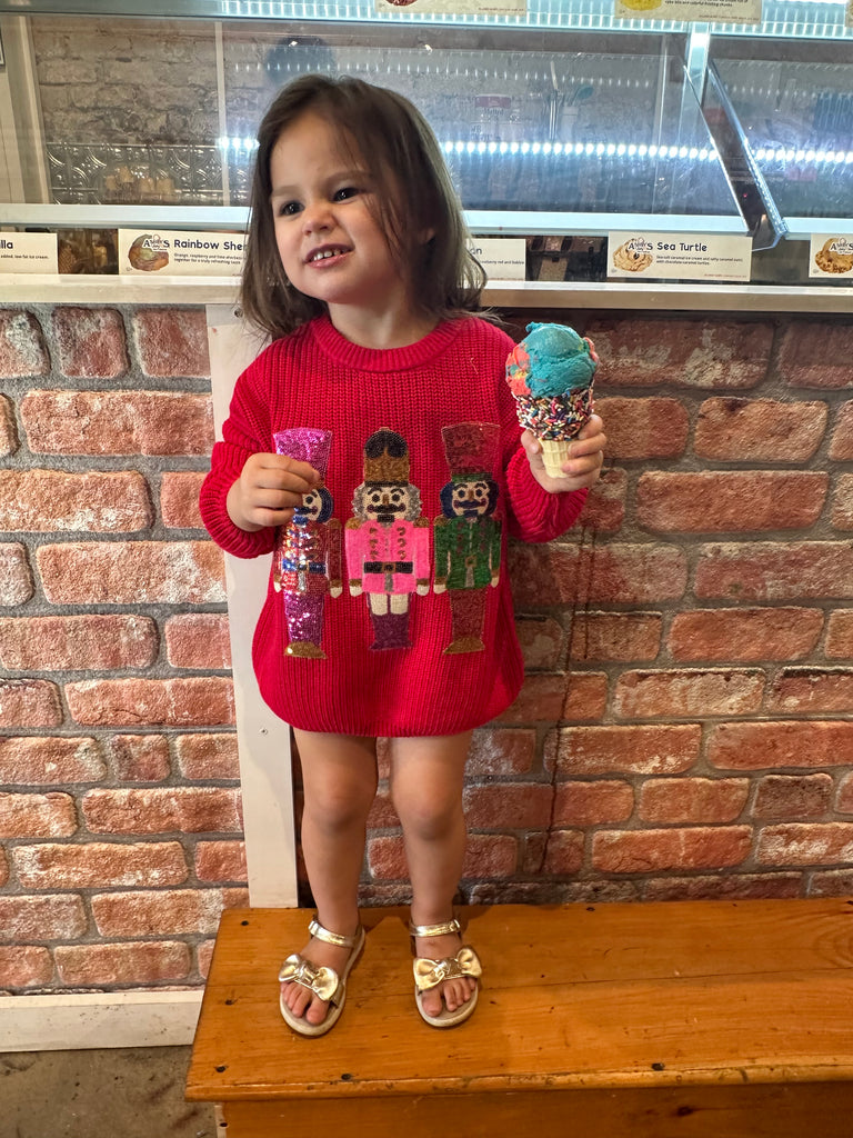 Get your little one ready for the festive season with this charming Nutcracker sequined pullover sweater. Perfect for fall and winter, it combines cozy warmth with sparkling holiday cheer. The eye-catching sequins add a magical touch, making it ideal for Christmas celebrations and family photos. Comfortable and stylish, this sweater is a delightful way to keep your child festive and cozy all season long. Pre-order now to ensure your holiday wardrobe is complete!