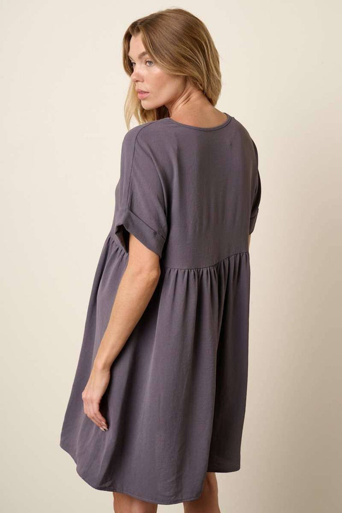 -AIRFLOW WOVEN FABRIC -V NECK -DOLMAN SHORT SLEEVE WITH CUFF BAND -BABYDOLL WAISTLINE -SIDE POCKET -MINI LENGTH