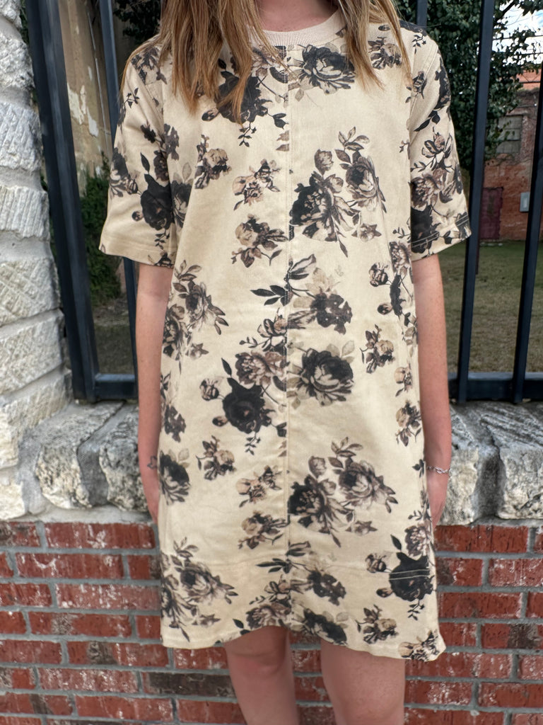Introducing our Desert Rose Dress in ecru! This playful dress features a dark rose print, perfect for a fun and flirty look. With its unique design and quirky details, this dress will make you stand out from the crowd. Embrace your playful side with our Desert Rose Dress!