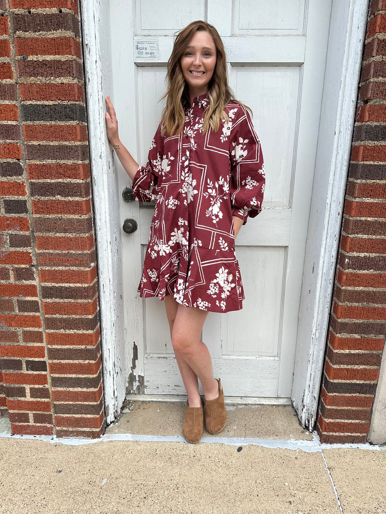 Get ready for an Autumn Affair with this stunning maroon dress. Its floral design adds a touch of whimsy, while its soft fabric provides comfort and style. Perfect for any occasion, this dress will have you looking and feeling your best!