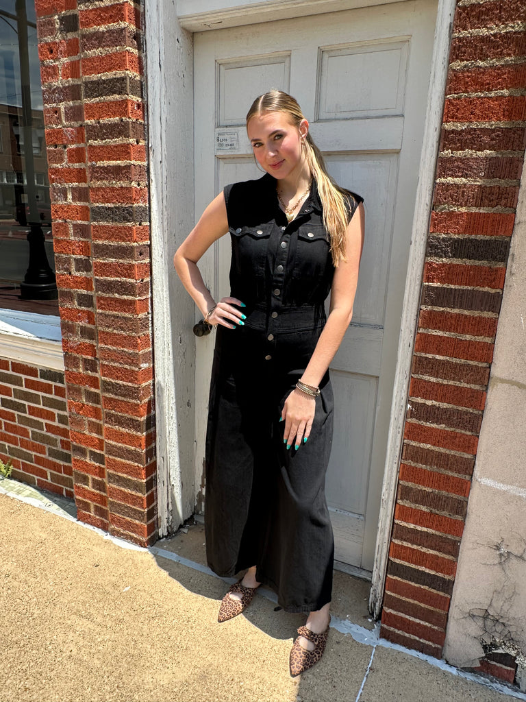Outlaw Hour Denim Jumpsuit: Black