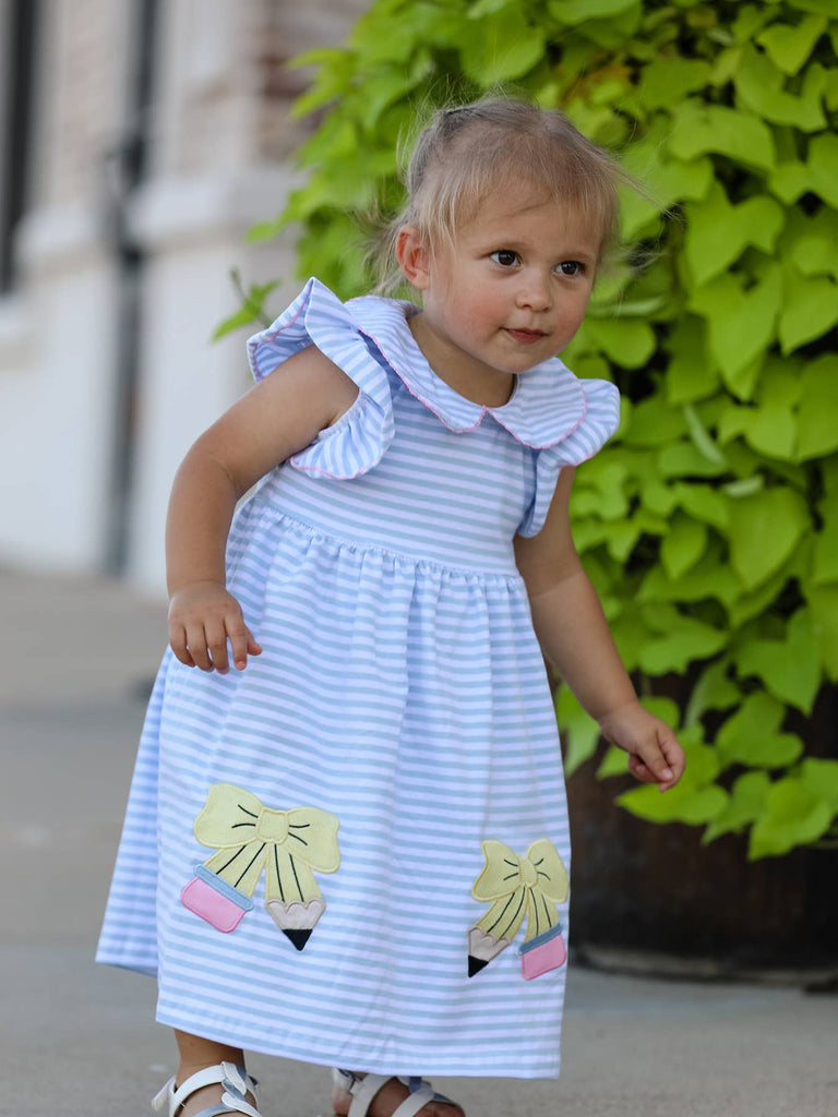 Dress your little one in style for the new school year with our Back To School Girls Plaid Pencil Applique Bow Dress! Featuring a classic plaid design and a charming pencil applique, this dress is perfect for both school days and special occasions. The cute bow adds a touch of playfulness, while the comfortable fabric ensures all-day comfort. Get your hands on this must-have dress today!
