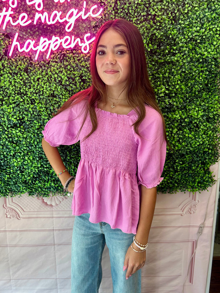 Girl's Fashion Top w/ Smocking & Puff Sleeves