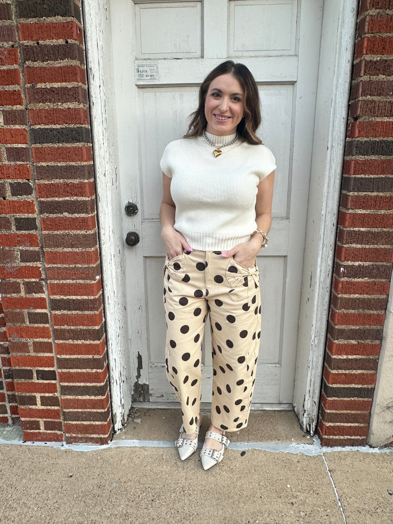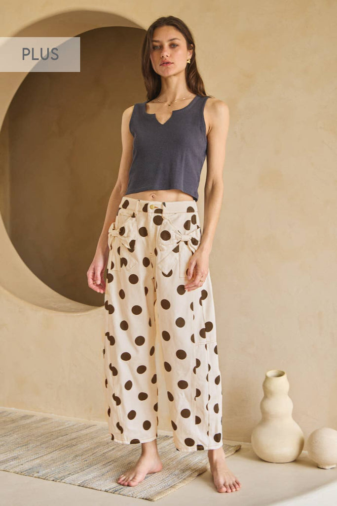 Sophia Coquette Pants PLUS: Cream Polka Dot