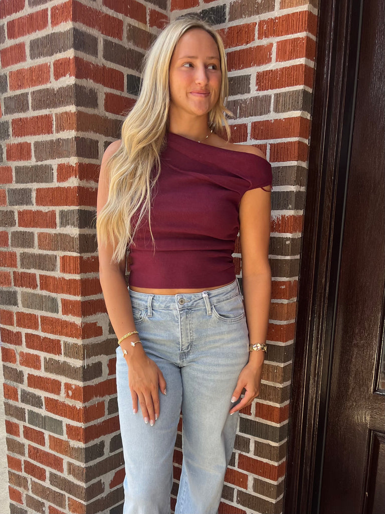 Introduce an elevated twist to your wardrobe with our Asymmetrical Adrenaline Sweater Top in Burgundy. Featuring a unique, modern silhouette, this sweater top is sure to turn heads. Its asymmetrical design adds a touch of sophistication, making it a versatile piece for any occasion. Elevate your style with this must-have top.