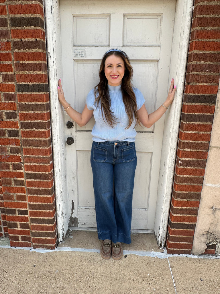 The Delicate Darling Knitted Top in sky blue is designed for the business casual environment. Its short sleeves and knitted texture offer both comfort and style, making it a versatile addition to professional attire. The trending color enhances your wardrobe, providing a contemporary look suitable for various occasions.