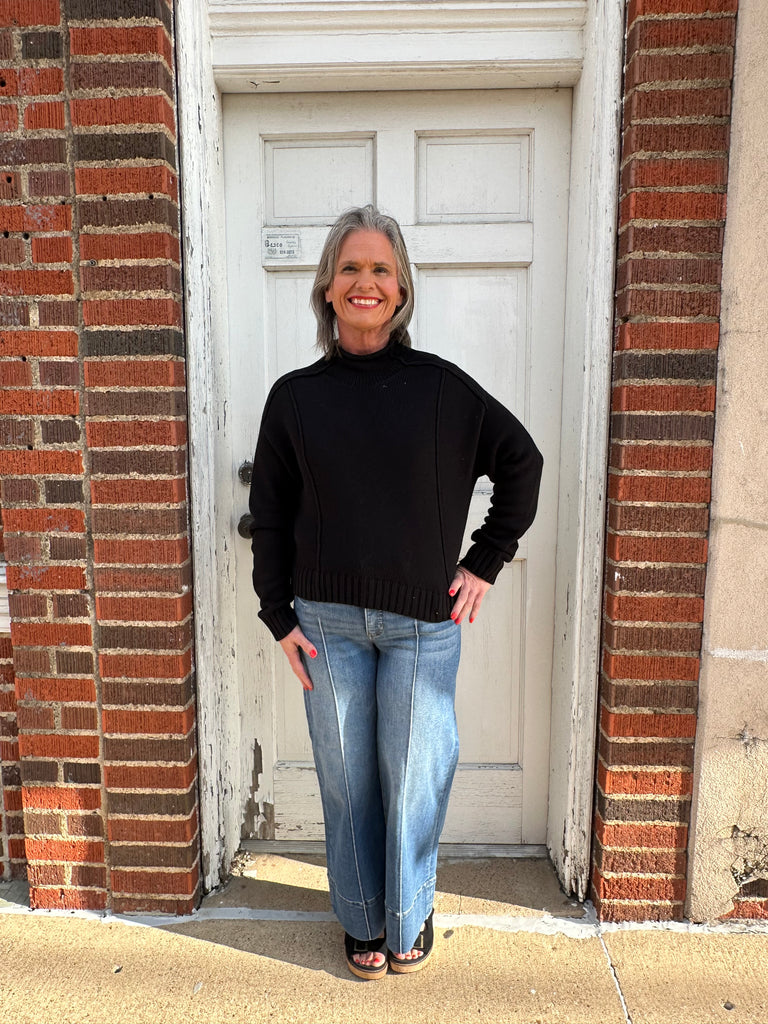 This timeless sweater is crafted with a ribbed texture, featuring a distinct mockneck for added flair. Its classic design ensures versatility and the ability to layer seamlessly over varied outfits.