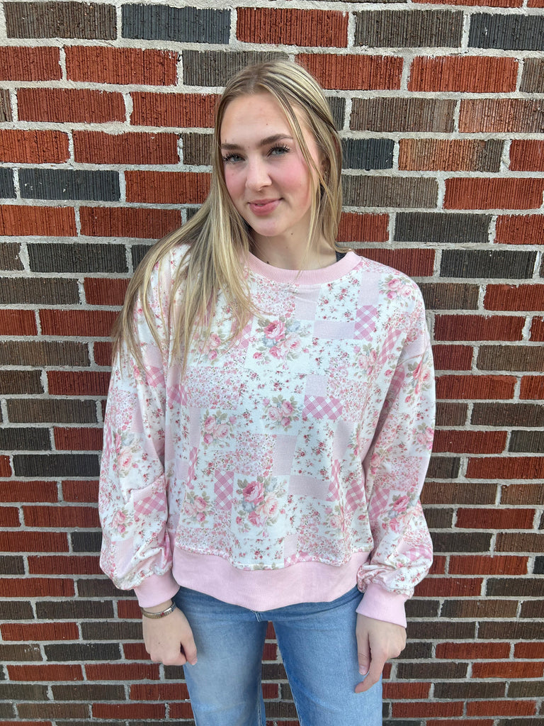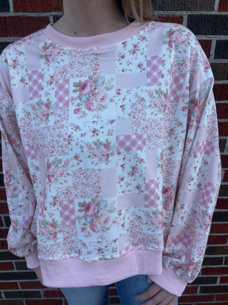 A vintage-inspired patchwork floral crewneck sweatshirt with a relaxed oversized fit. Made from a soft cotton blend for all-day comfort, this cozy pullover adds a feminine, cottage core touch to everyday outfits, loungewear, or casual styling. Floral Sweatshirt, Patchwork Top, Oversized Pullover, Vintage Floral, Cozy Sweatshirt, Casual Top, Lounge Wear, Cottage core, Soft Knit, Korean Style