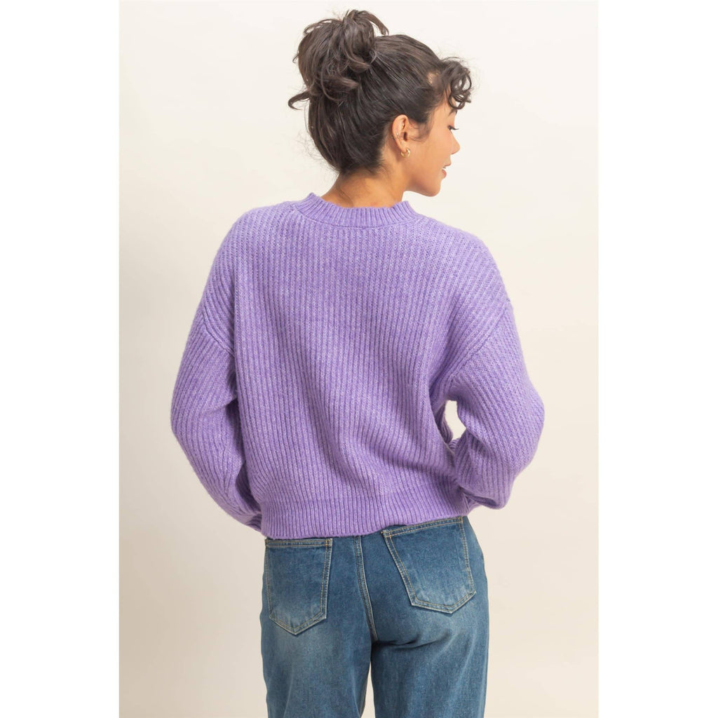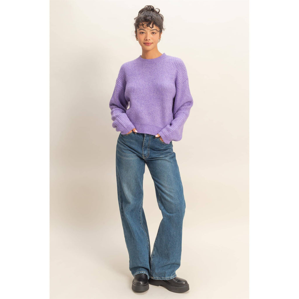 A dreamy lavender knit with soft ribbing and a relaxed, slouchy fit. This sweater gives that perfect cozy-but-cute look, ideal for brunch, errands, or casual days at the boutique. Easy to style and beautifully feminine, she’s the pop of color your closet needs.