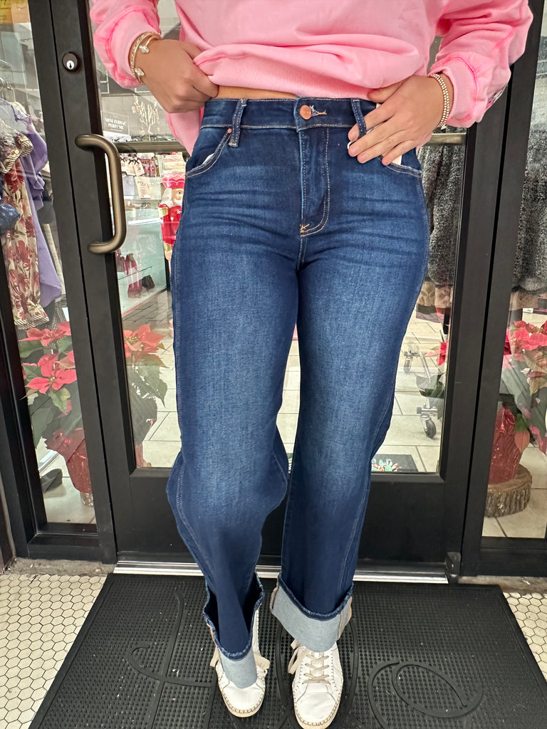 Experience the stunning allure of our Casanova Denim in a rich Dark Wash, featuring a trendy cuffed hem that can easily be left undone for a longer silhouette. These mid rise jeans also offer chic seamed detailing on the sides, making them the perfect addition to your wardrobe.