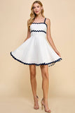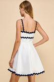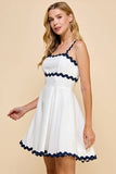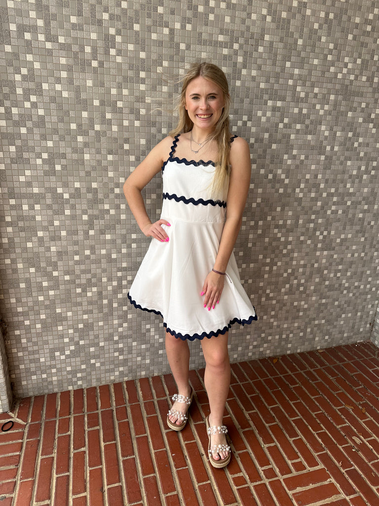 Scalloped detail dress with an A-line skirt. Featuring a concealed back zipper.