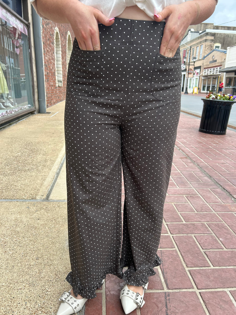 Step into the spotlight with Colette Wide-Leg Pants in Brown! These polka-dotted wonders aren’t just business casual—they’re business *fun*! Perfect for strutting into meetings or impressing at brunch, you'll be knee-deep in style while remaining oh-so-comfy. Who says workwear can’t have a little pizzazz?