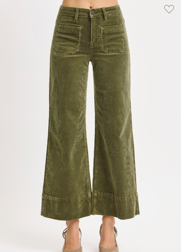 Couture Cord Patch Pocket Jeans: Olive