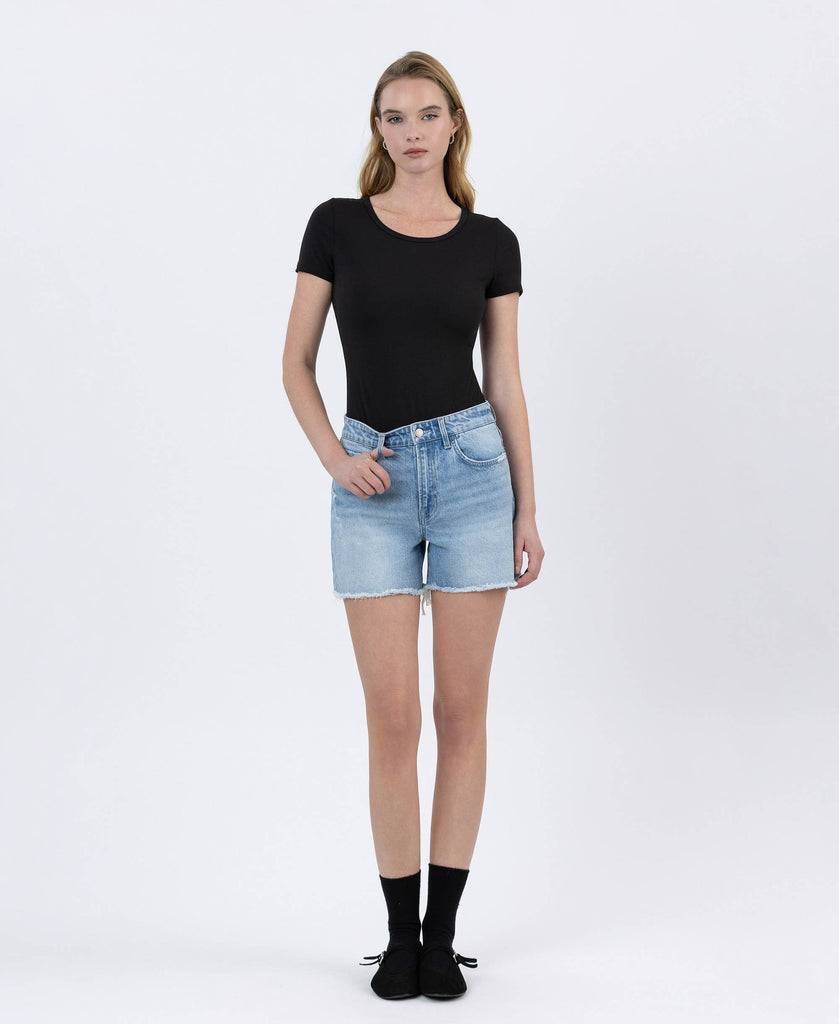 Meet your new go-to for all things easy and effortless 🤍 The Easy Days Denim Shorts feature a light wash with subtle distressing and a relaxed, lived-in feel that only gets better with time. Designed with a flattering high-rise fit and just the right amount of structure, these shorts give you that laid back look without sacrificing shape.