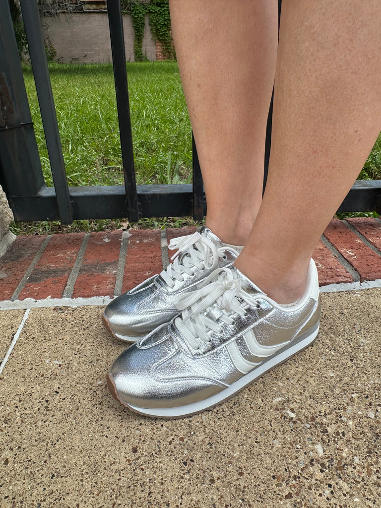 Step up your everyday style with the KickOff Sneakers in Silver Metallic ✨ These statement-making sneakers bring the perfect mix of sporty and chic with their eye-catching metallic finish and classic silhouette.