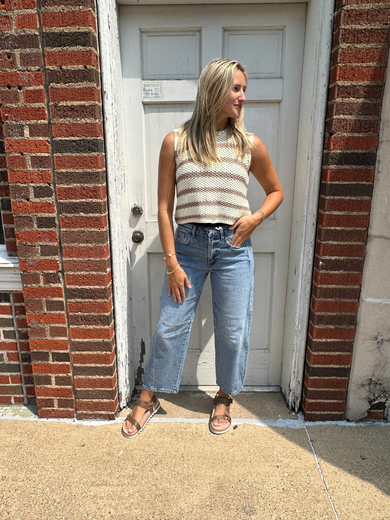 sleeveless, sweater top, chunky sweater, summer sweater top, striped sweater, crew neck, comfy sweater