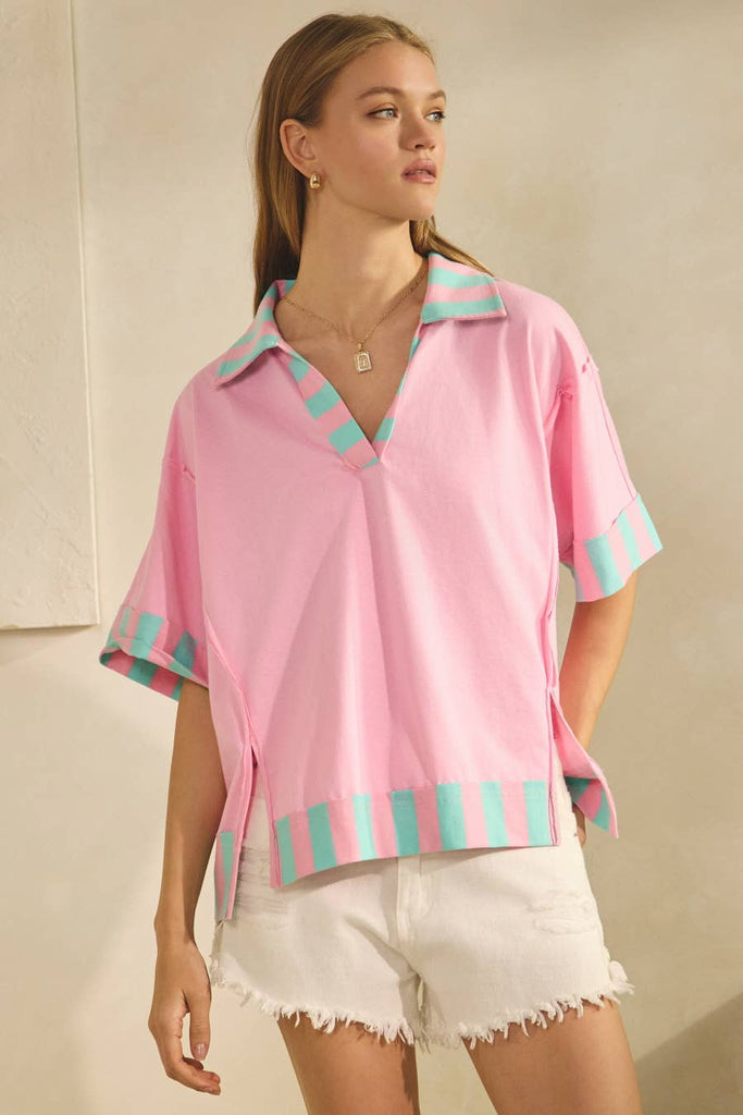 Relaxed And Ready Top: Pink Combo