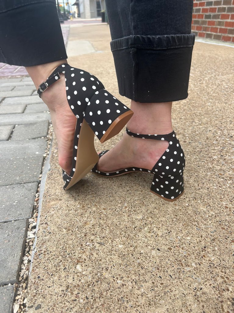 Meet the heel that’s equal parts classic and playful 🤍🖤 The Save the Date Polka Dot Heels are designed to elevate any outfit with their timeless black base and fun white polka dot print. Featuring a sturdy block heel and ankle strap for added support, these beauties are just as comfortable as they are cute.