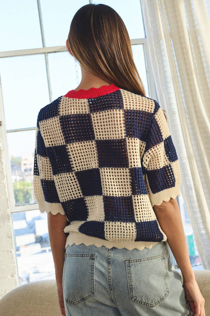 Catch some serious vibes in the A Checked Choice Top: Navy Cream! Perfect for beach days or just pretending you’re at one (we won’t tell). Its beachy charm invites sunny flings and sandy shenanigans. So slip it on and let the good times roll! (Warning: May cause spontaneous salsa dancing.)