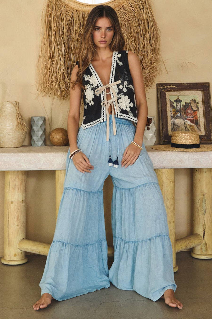 Step into your flower power with the Boho Baddie Vest in classic black! Adorned with floral flair, it’s like wearing a garden party (without the pesky bees). Perfect for layering over anything—your outfit will blossom and turn heads faster than you can say, “Petal power!”