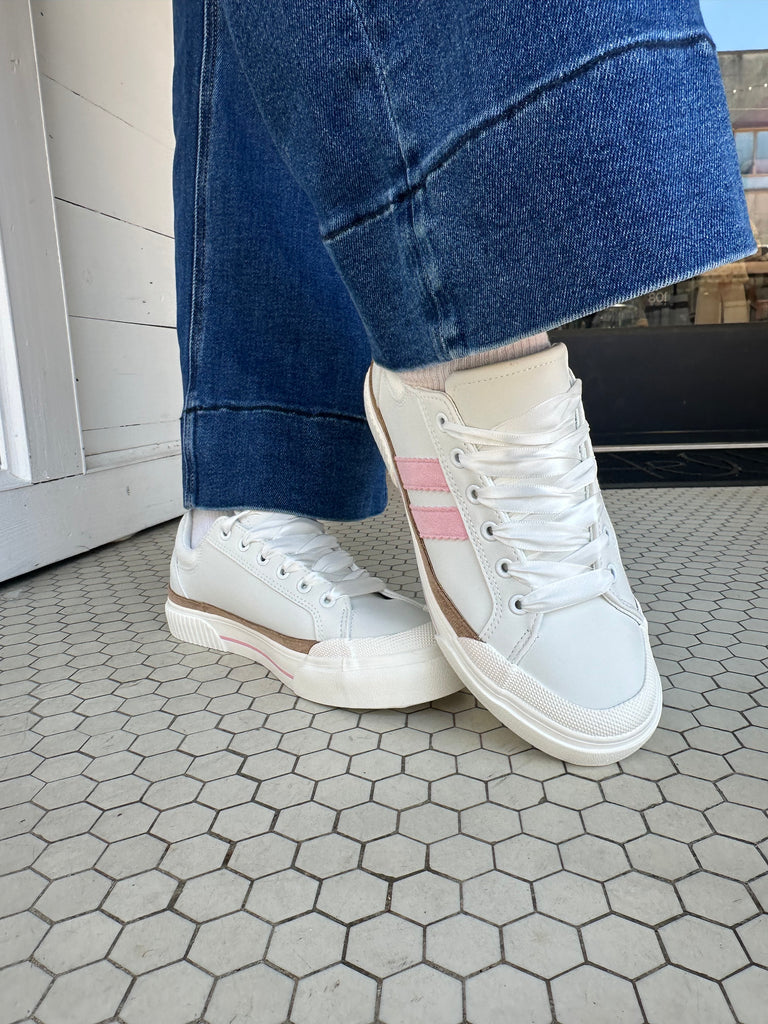 Our Best Selling style is back in a fresh color combination for Spring! Don’t miss the THAT’S HER SNEAKERS with a trendy shape and a pop of pink on the side! These are our most comfortable sneakers yet with an insane gel foam bottom that will keep your foot cool and comfortable. Not to mention the adorable satin lace on this pair for a totally custom look!