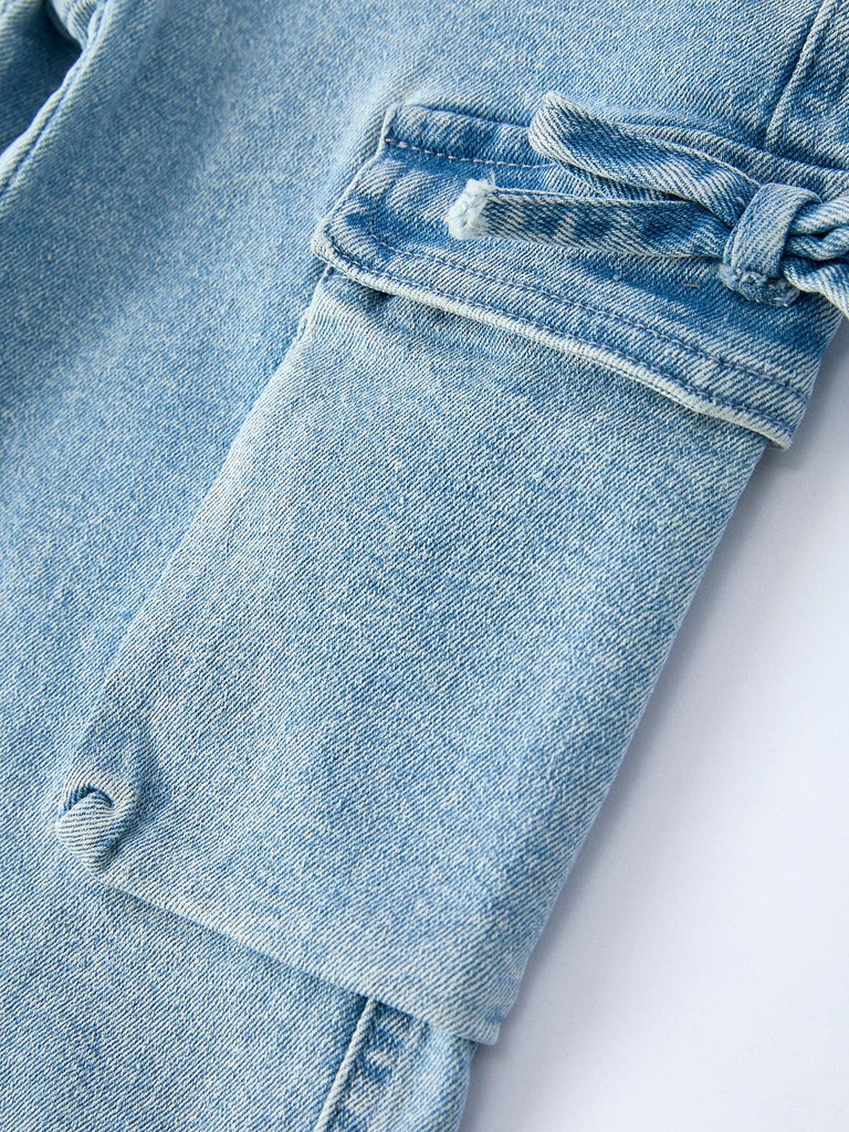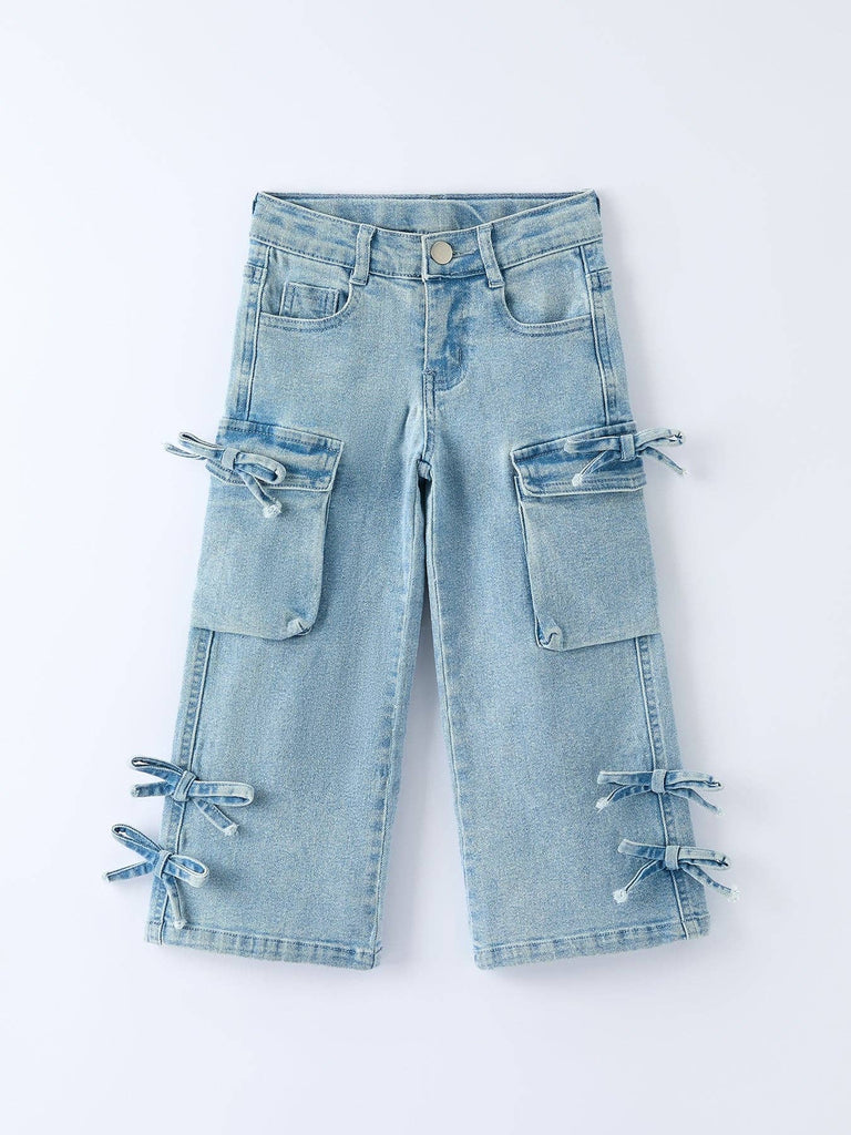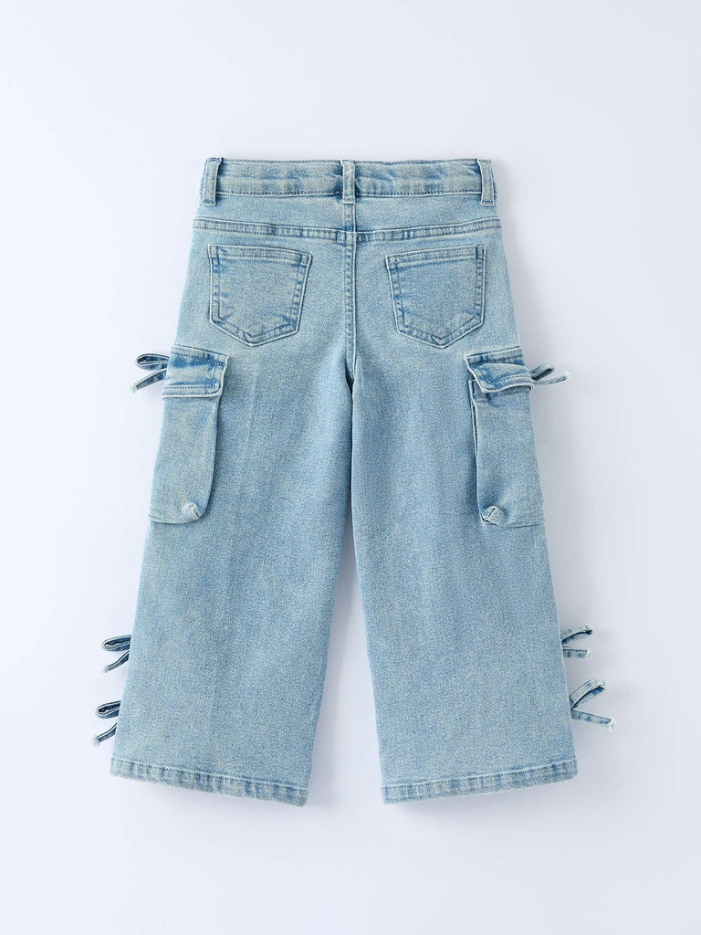 Wide-leg denim that moves with your little one. These pants feature functional pockets—a practical detail parents appreciate—and a relaxed silhouette that's comfortable for play, exploration, and everyday wear. Crafted from quality denim, they pair effortlessly with seasonal prints and layered pieces in the Rylee Faith collection. A timeless staple that grows with your child's wardrobe. SKU:PNG60099 Material:75.5%cotton 1.2%spandex 23.3% polyester